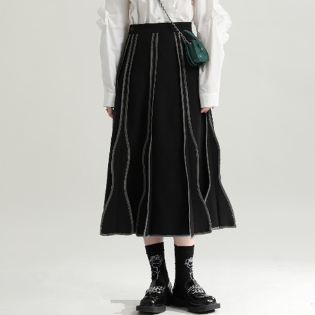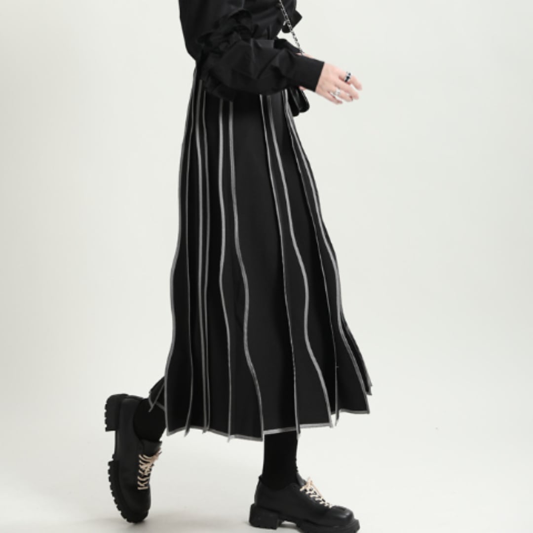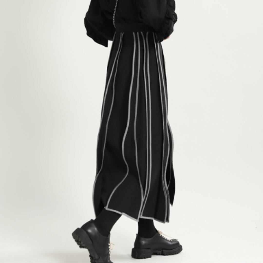 Slim fit high waist striped wave midi skirt(ME003)