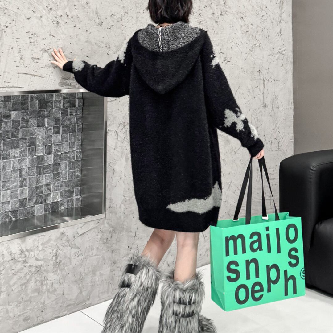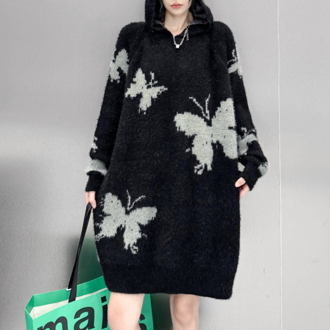 Loose-fitting butterfly print one-piece sweater(ME036)