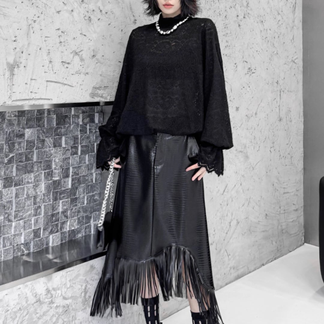 Coat Sleeve Lace Blouse High Neck T-Shirt (ME126)