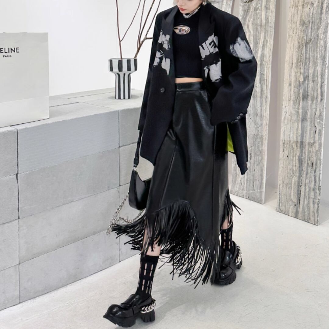 Synthetic leather tassel skirt (ME134)