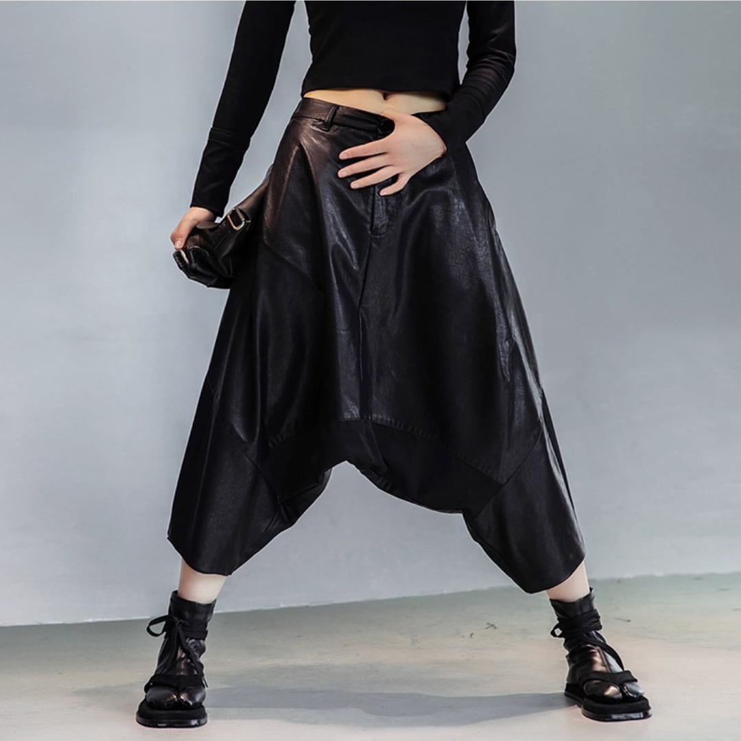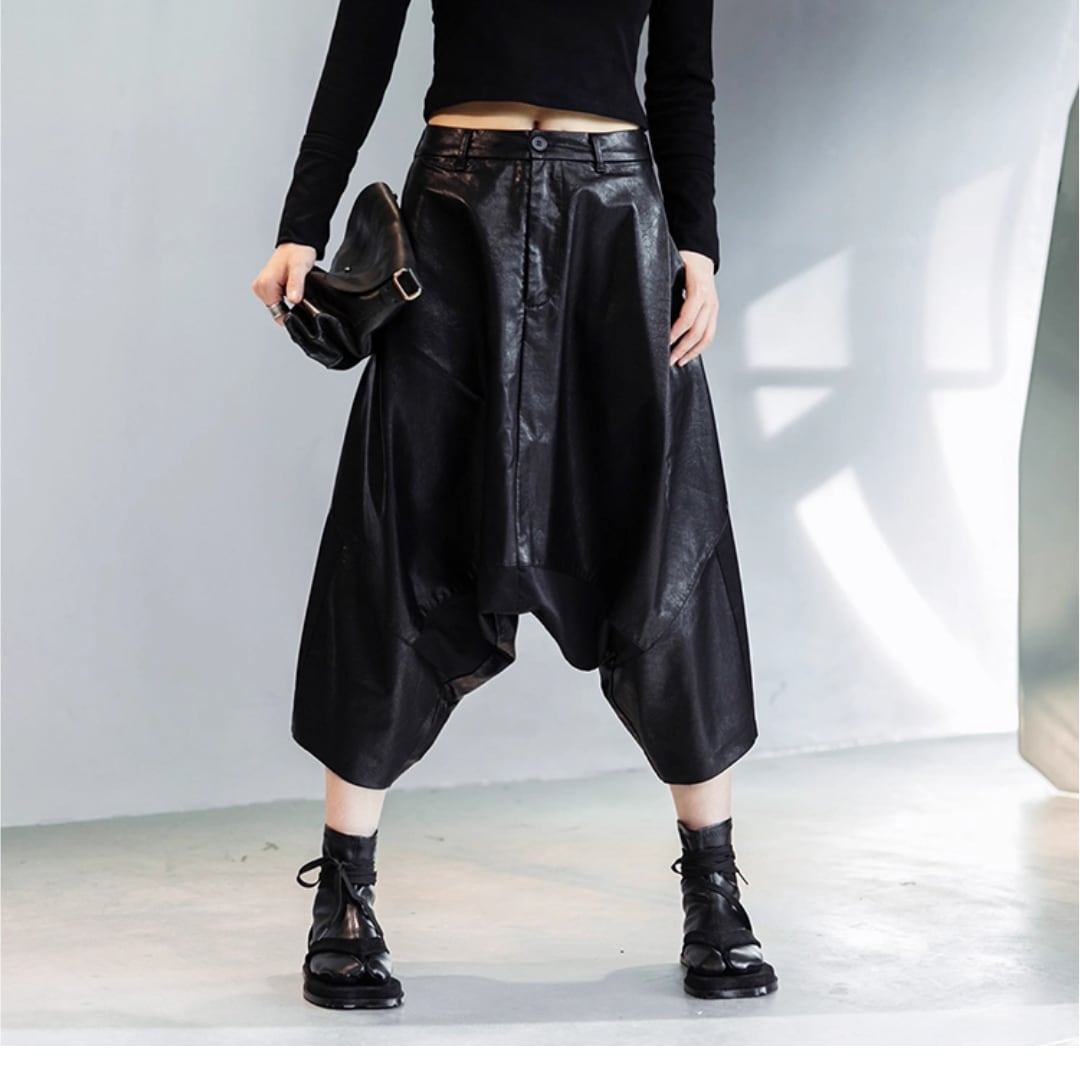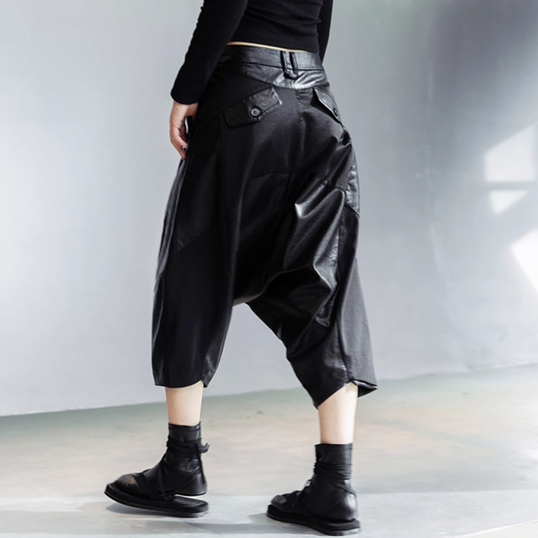 Patchwork leather pants with drop crotch harem design (ME142)