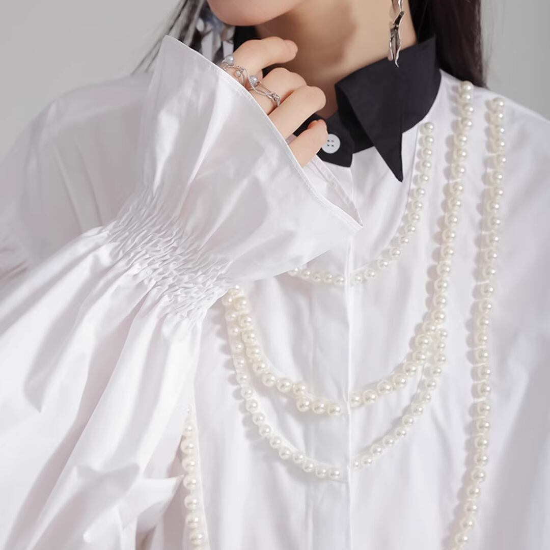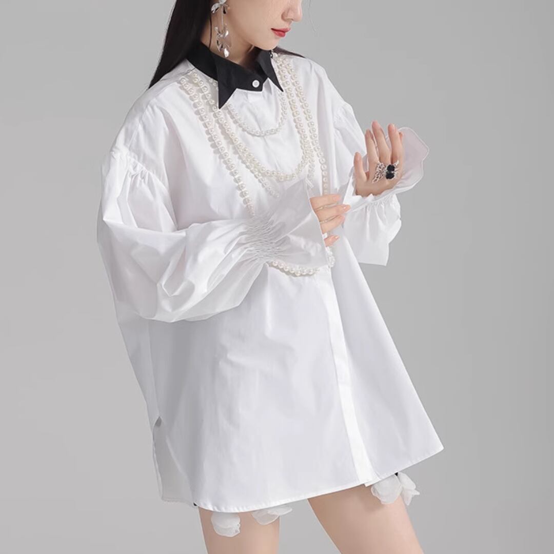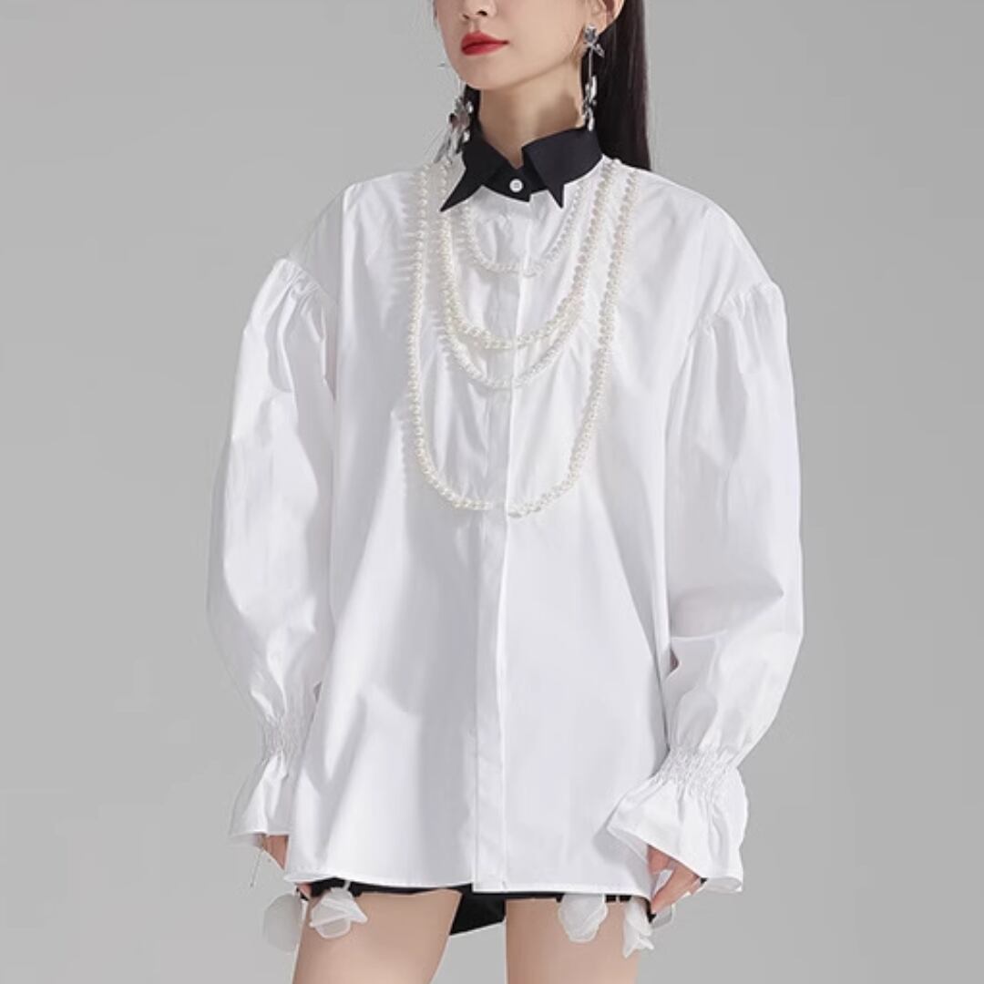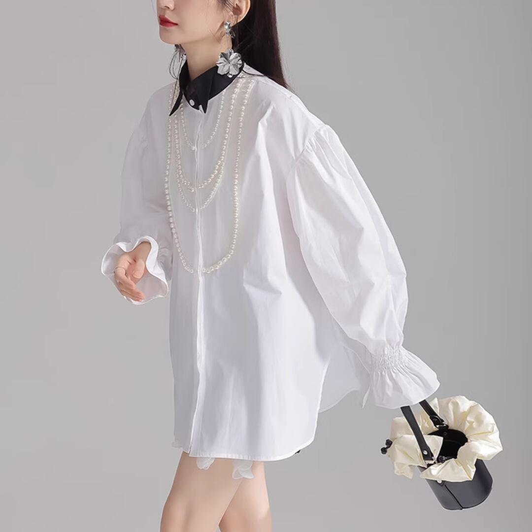 Puff sleeve pearl embellished shirt (ME168)