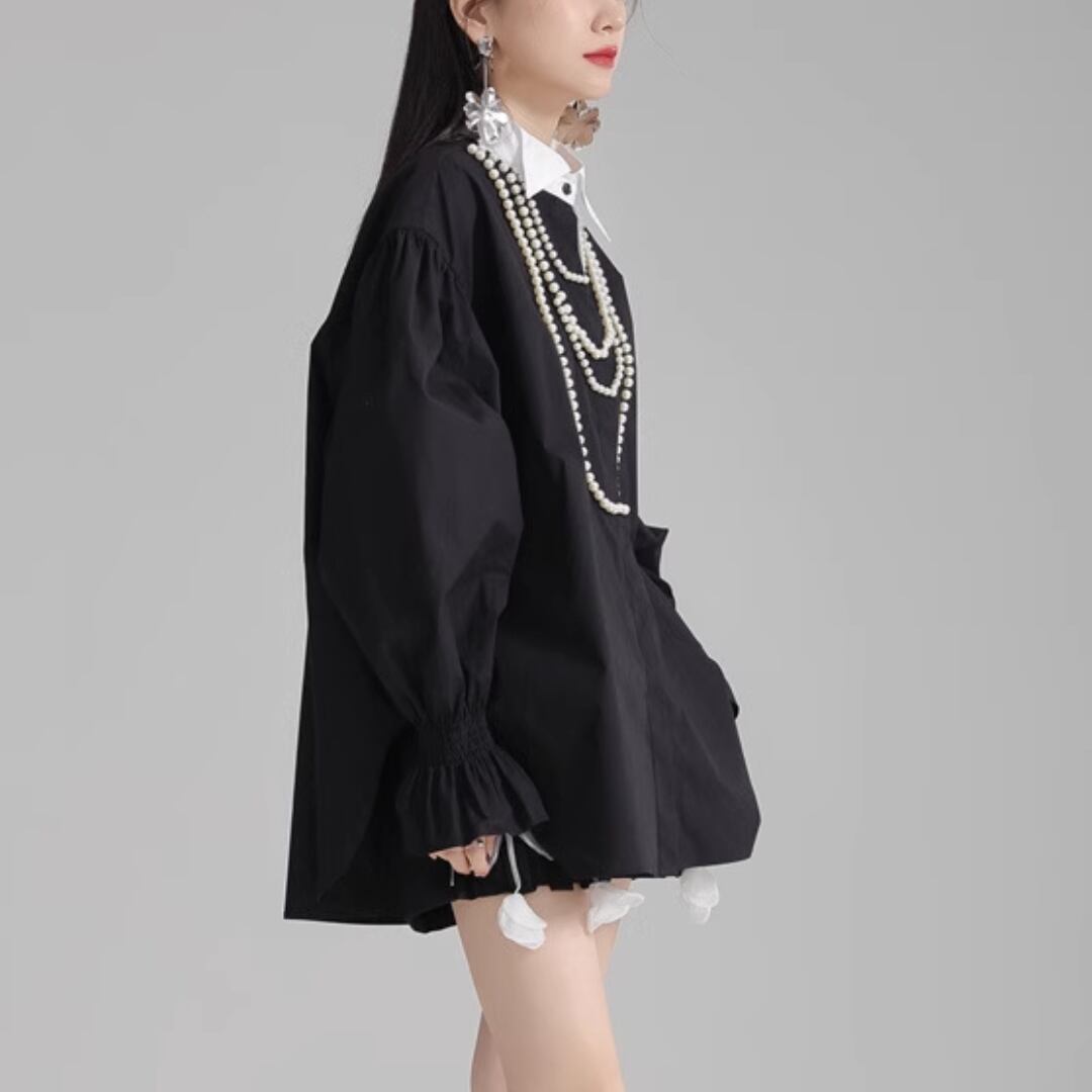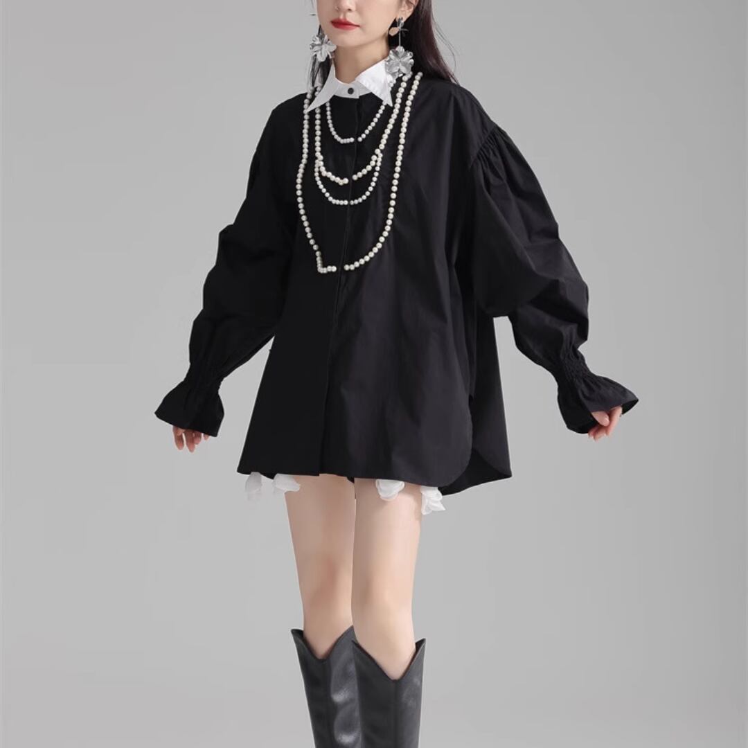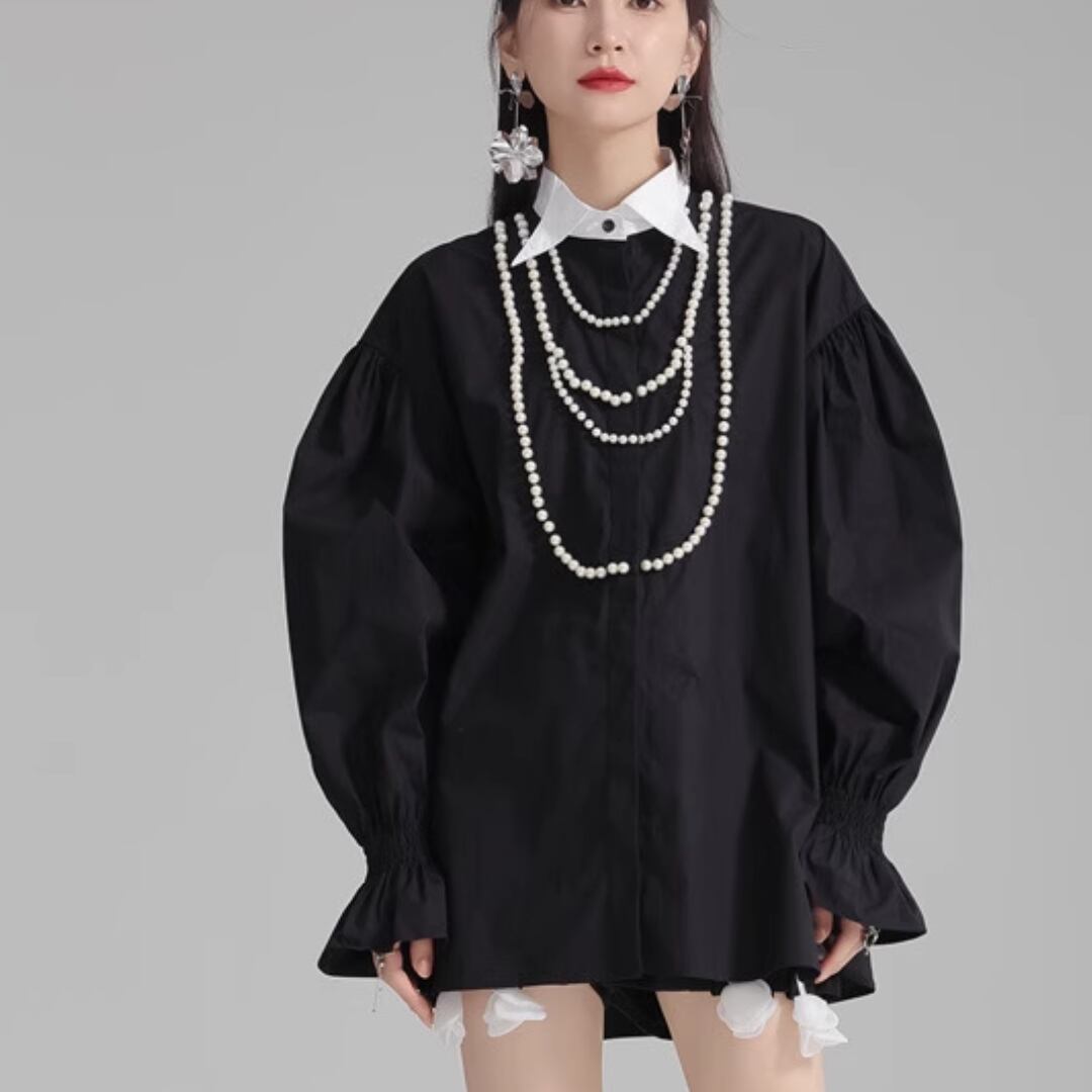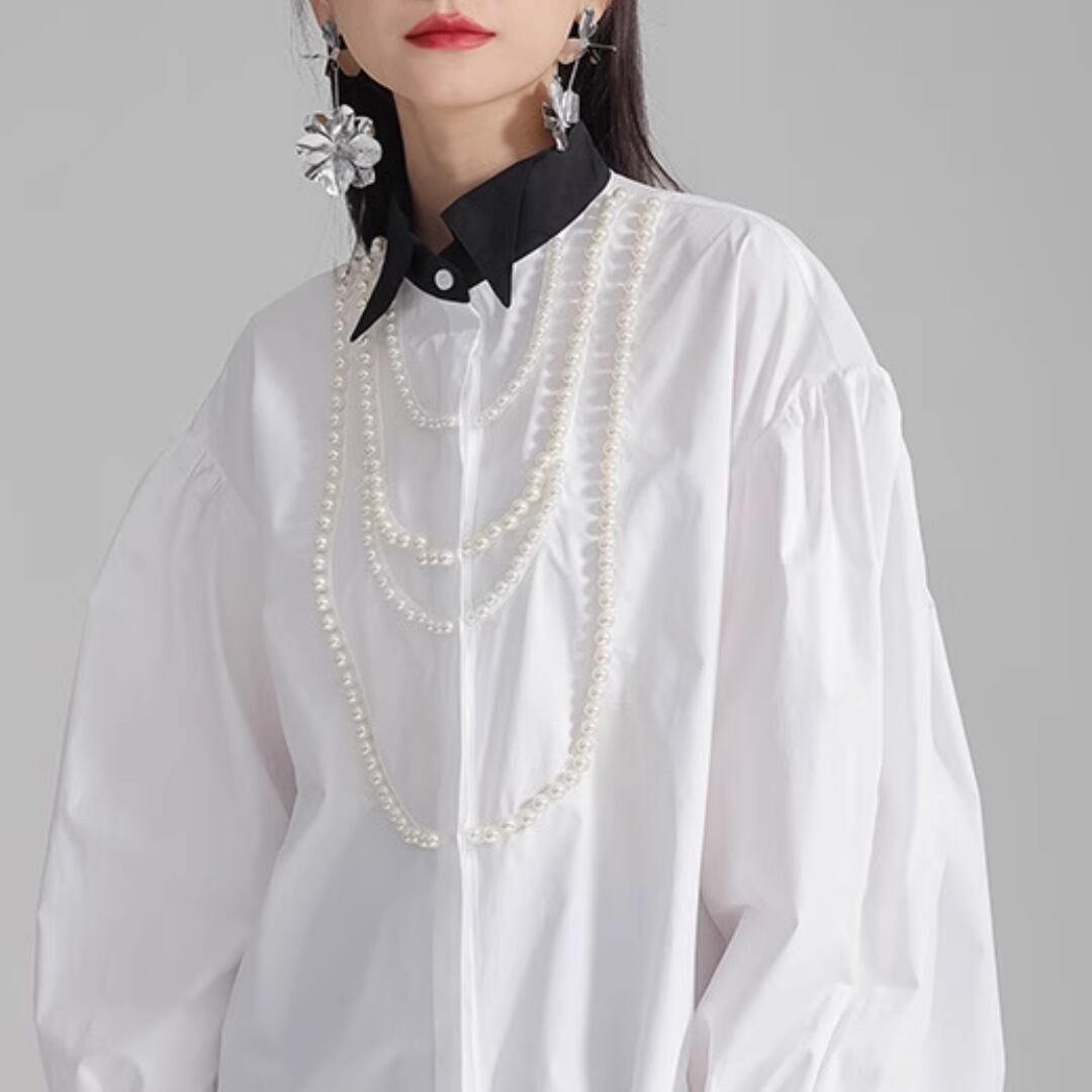 Puff sleeve pearl embellished shirt (ME168)