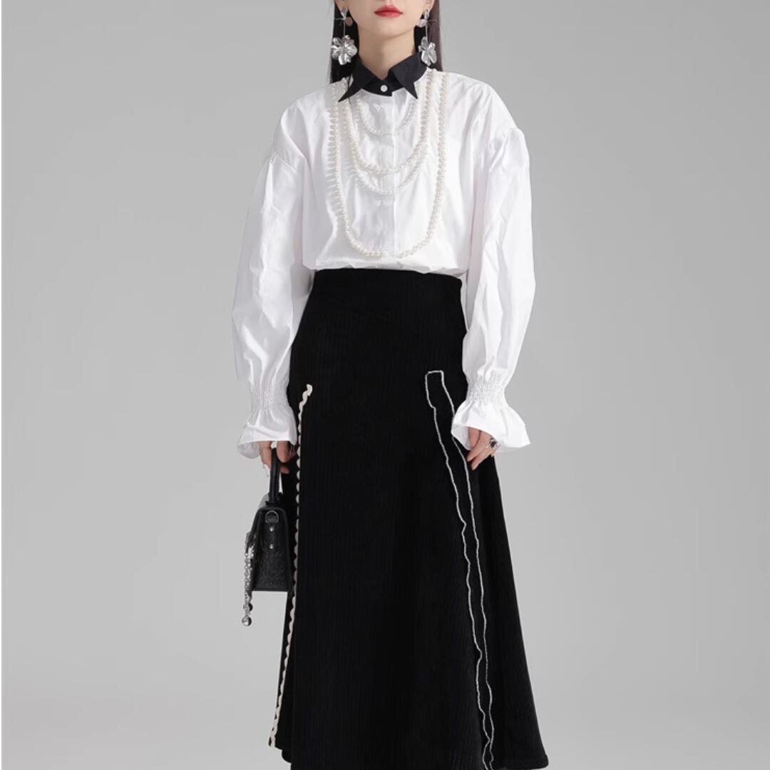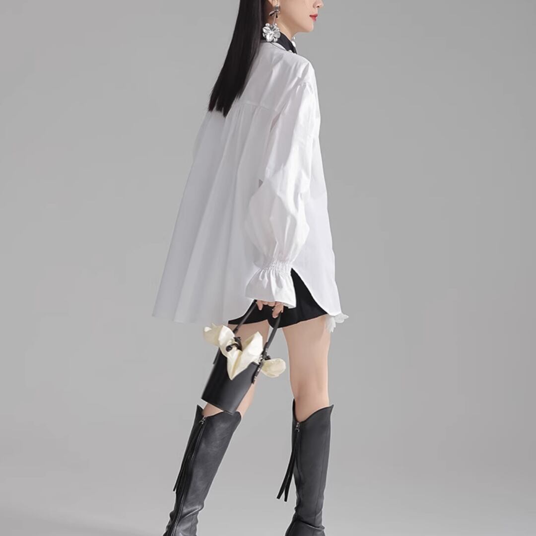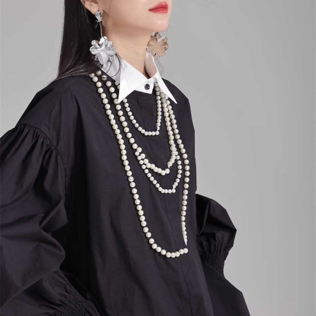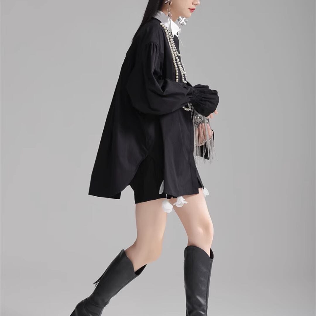 Puff sleeve pearl embellished shirt (ME168)