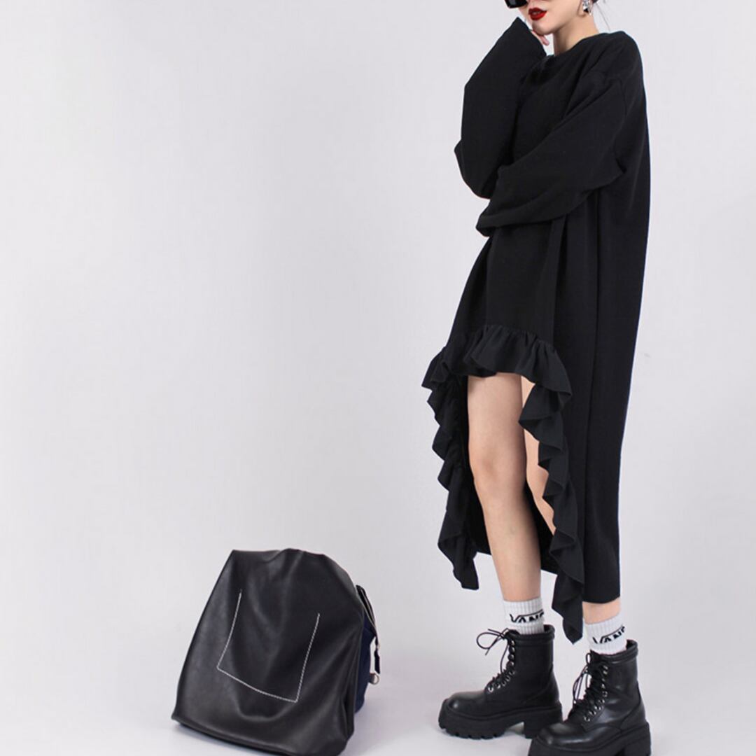 Irregular High-Low Hem Sweat Dress (ME190) | meme mode