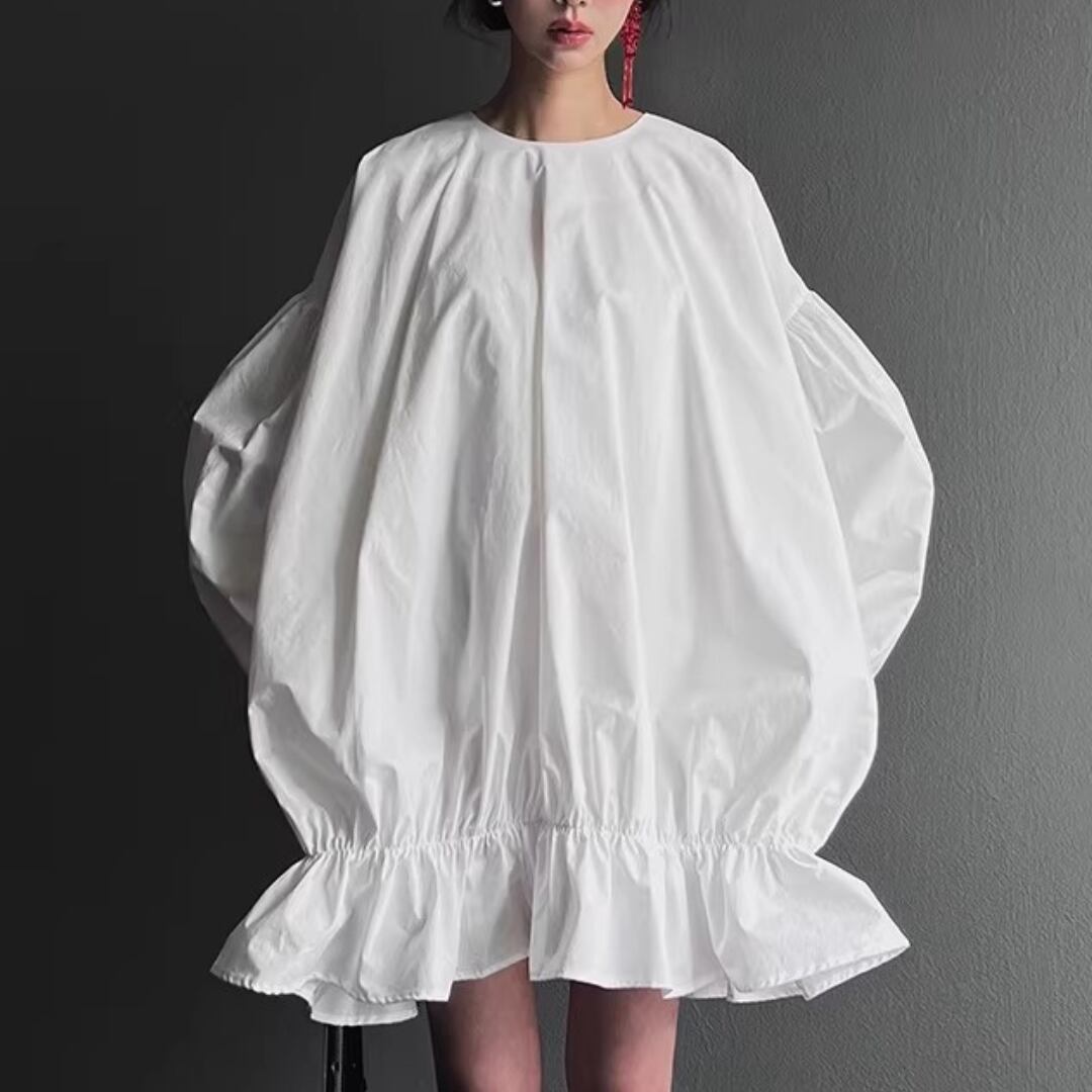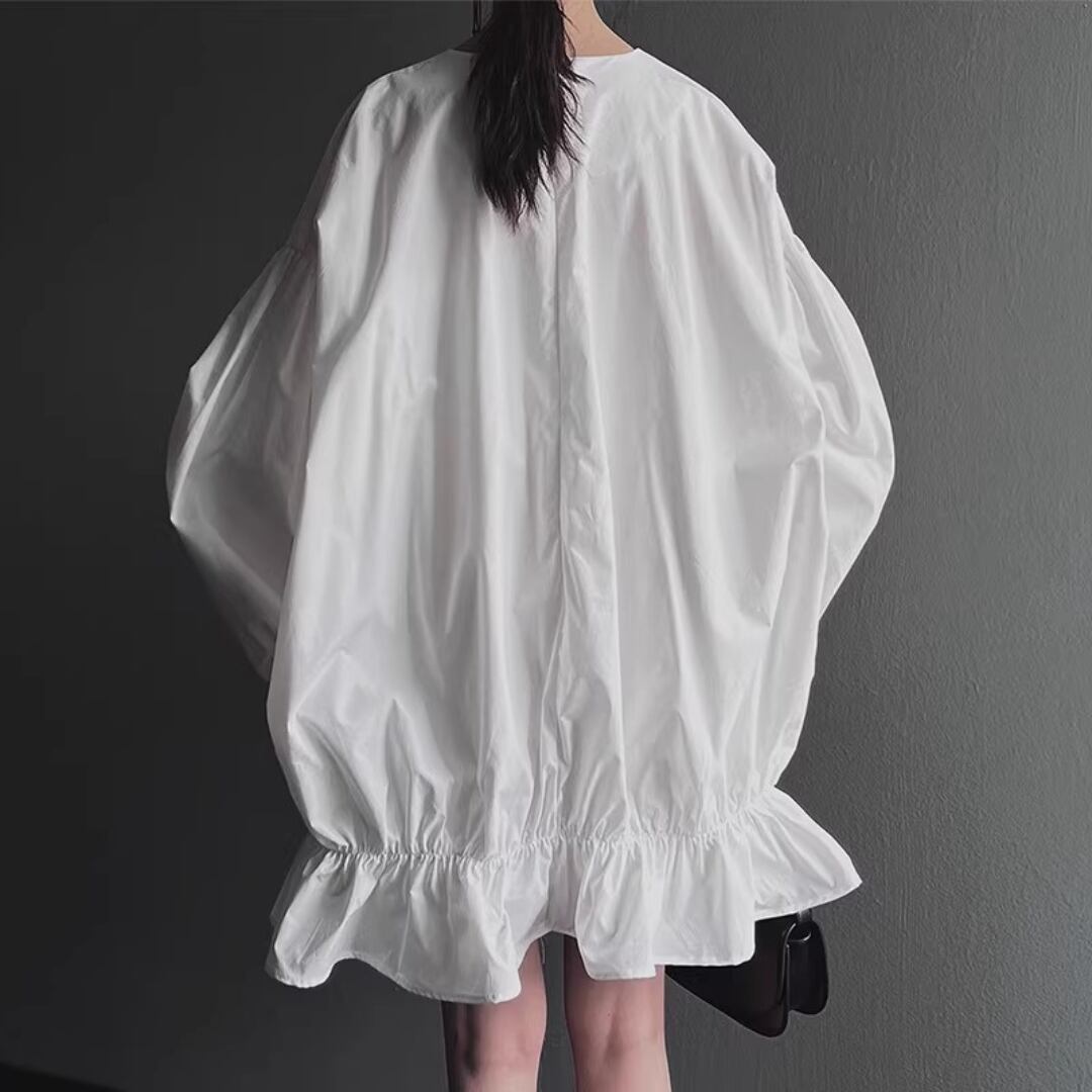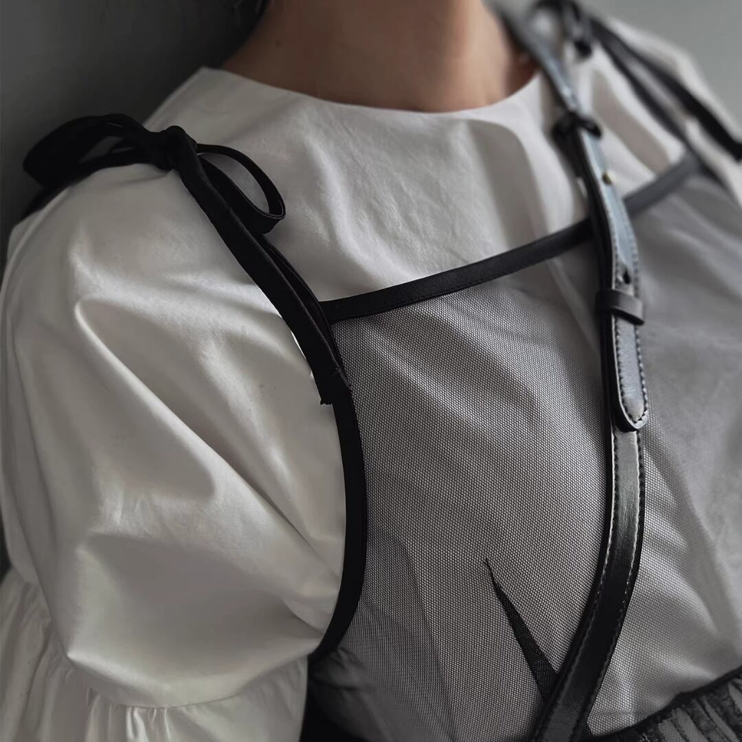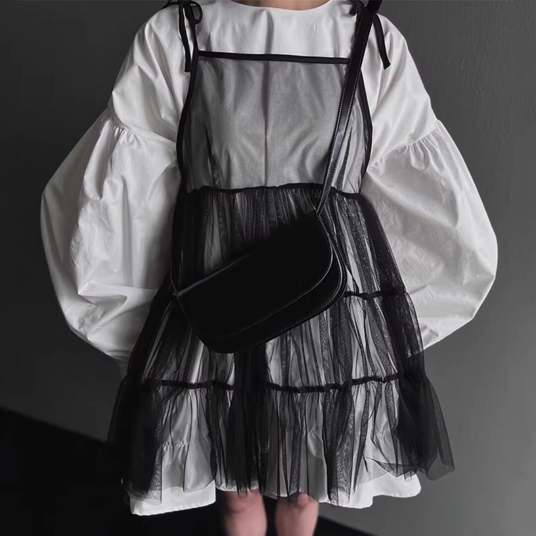 Elegant Lantern Sleeve Shirt Dress Set with Sheer Mesh Slip (ME212)