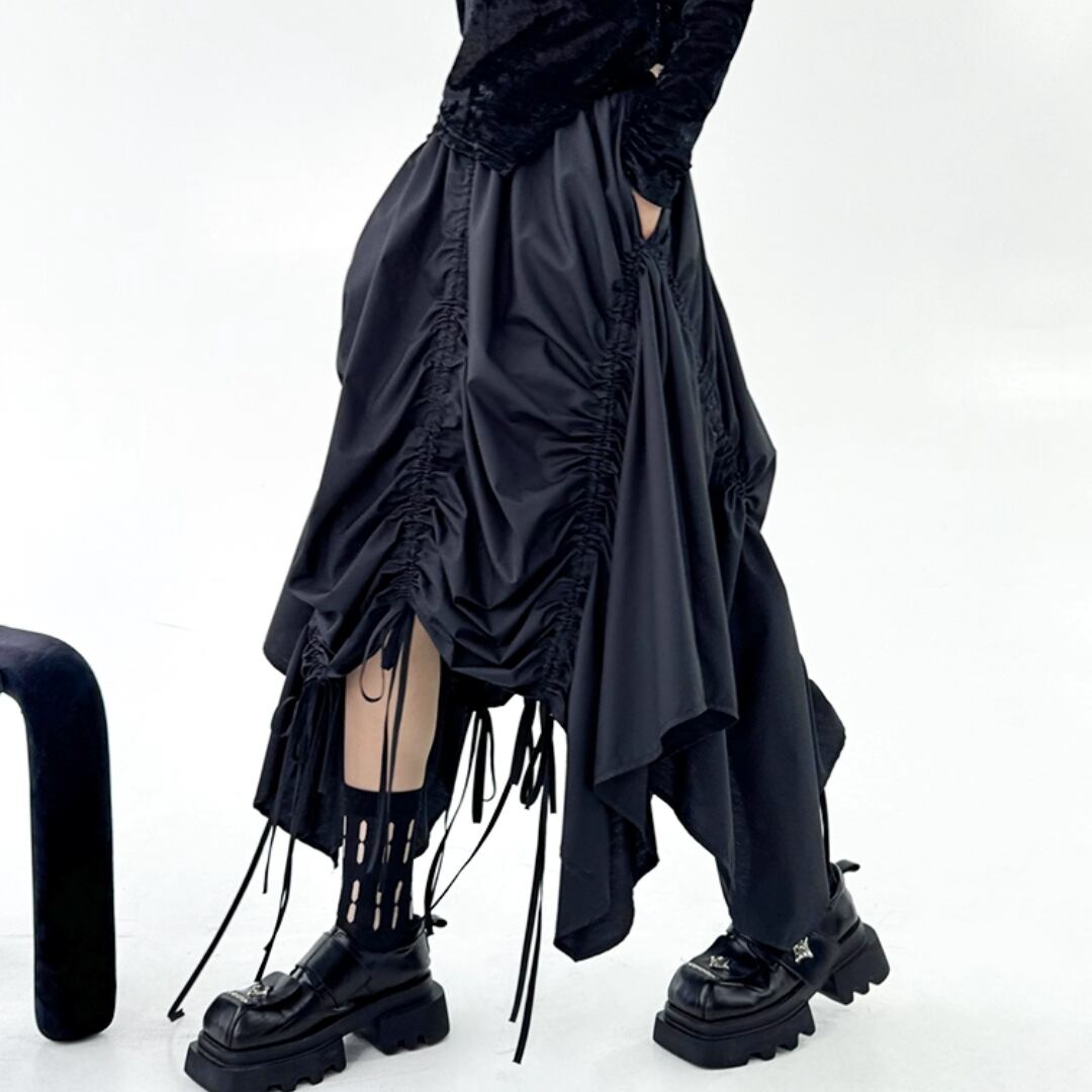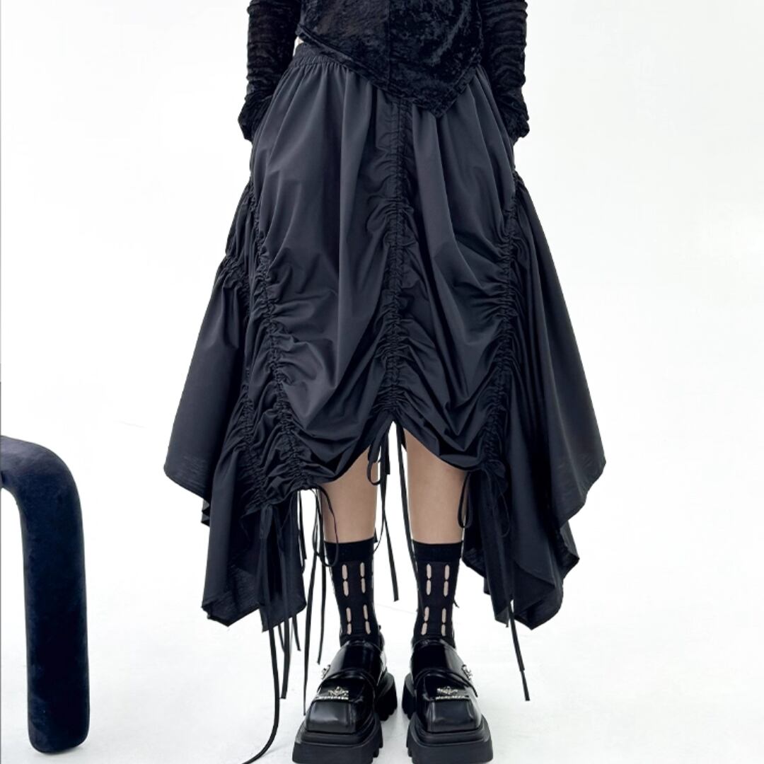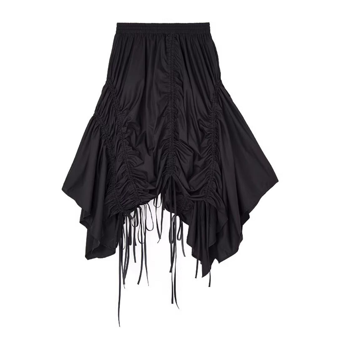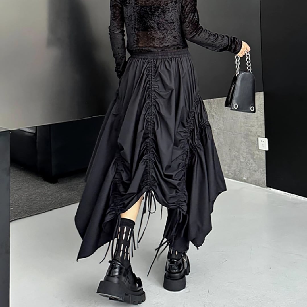 Asymmetrical Drawstring Midi Skirt (ME218)