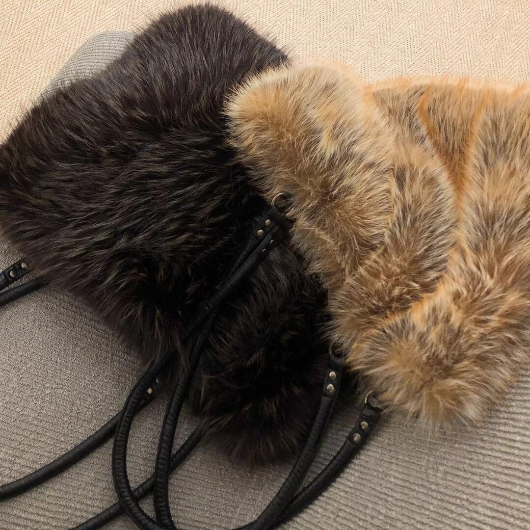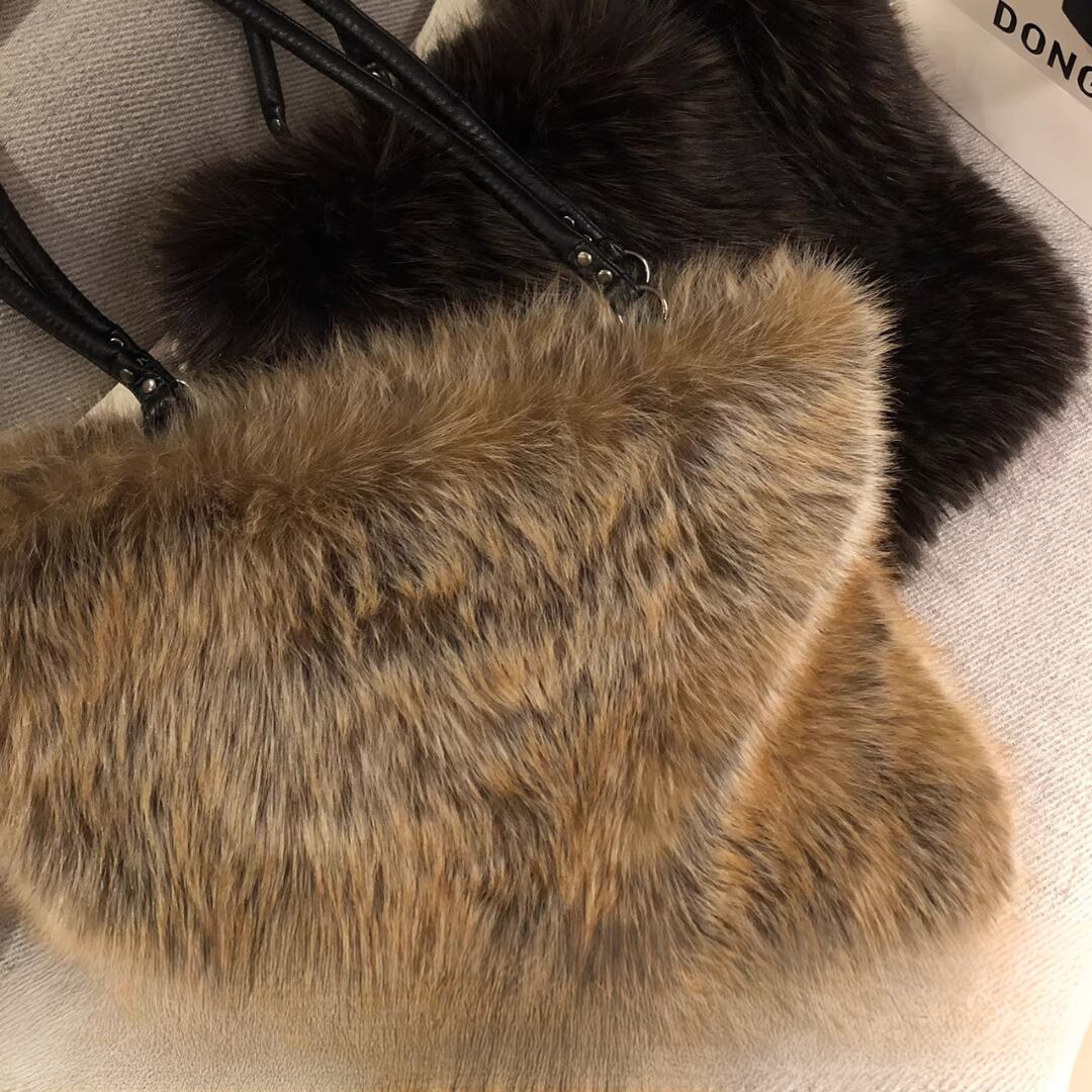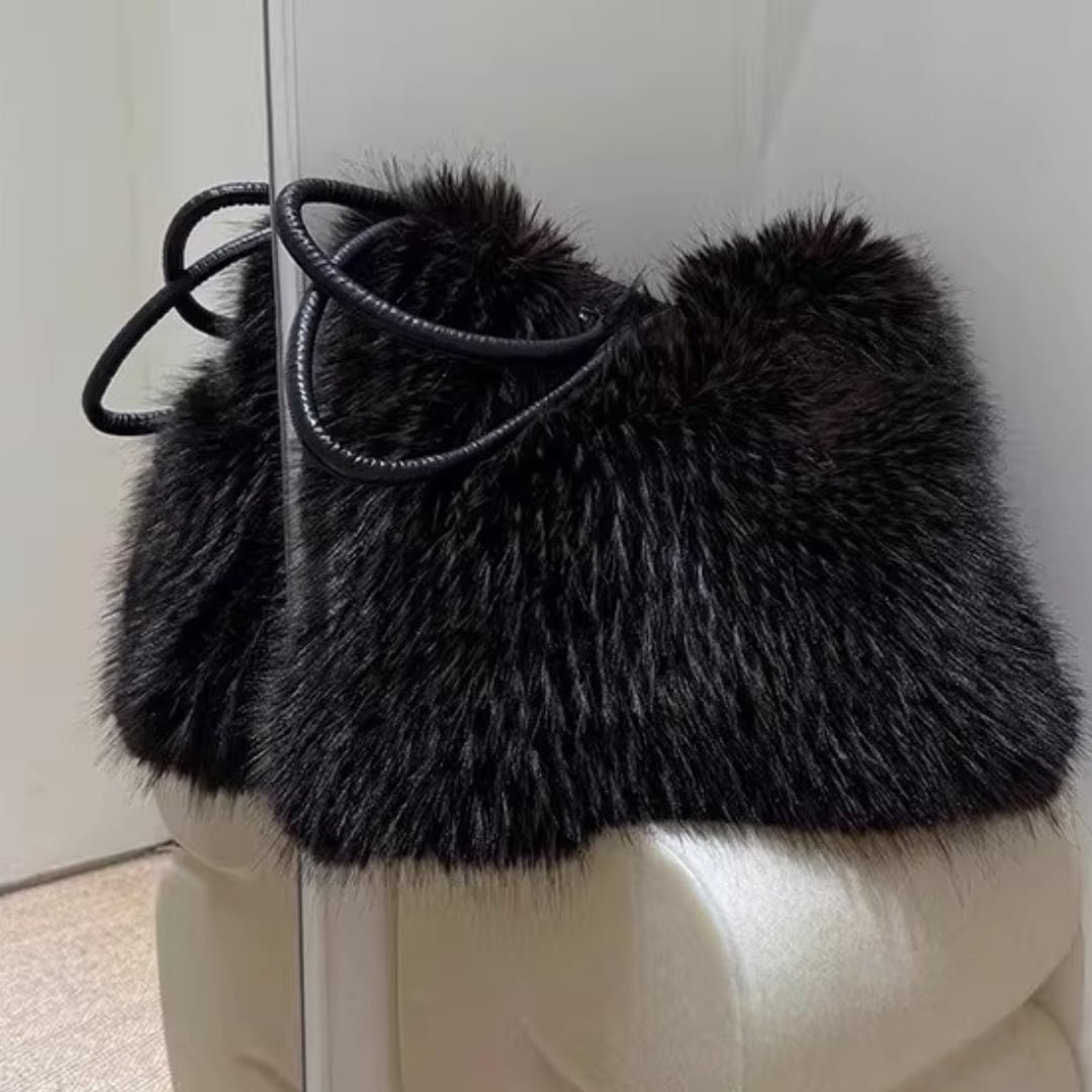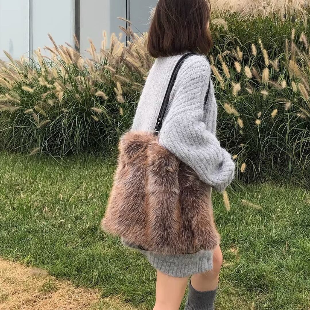 Patchwork Shoulder Bag, Latte Mist Tone Faux Fur Large Capacity Handbag (ME297)