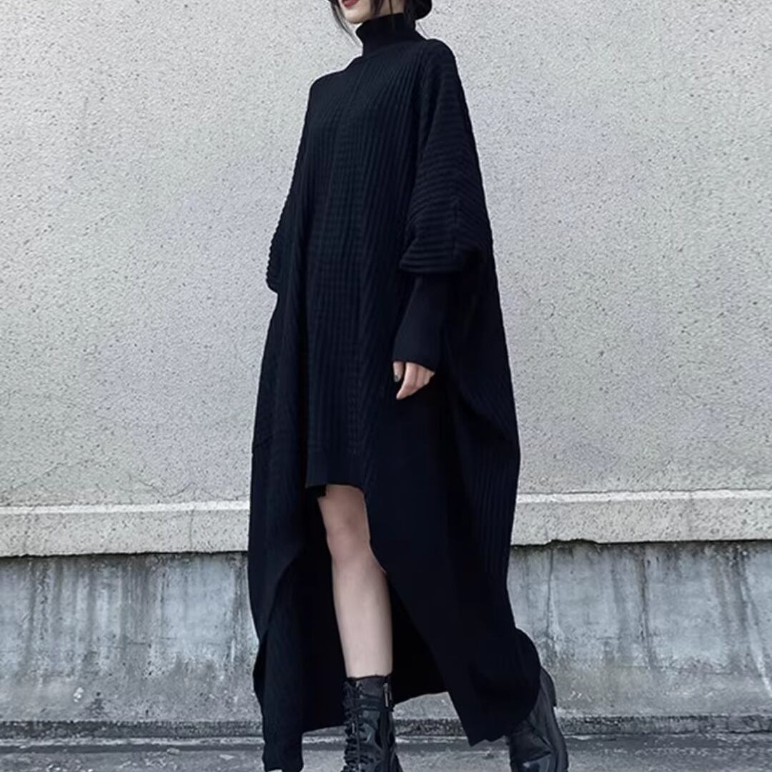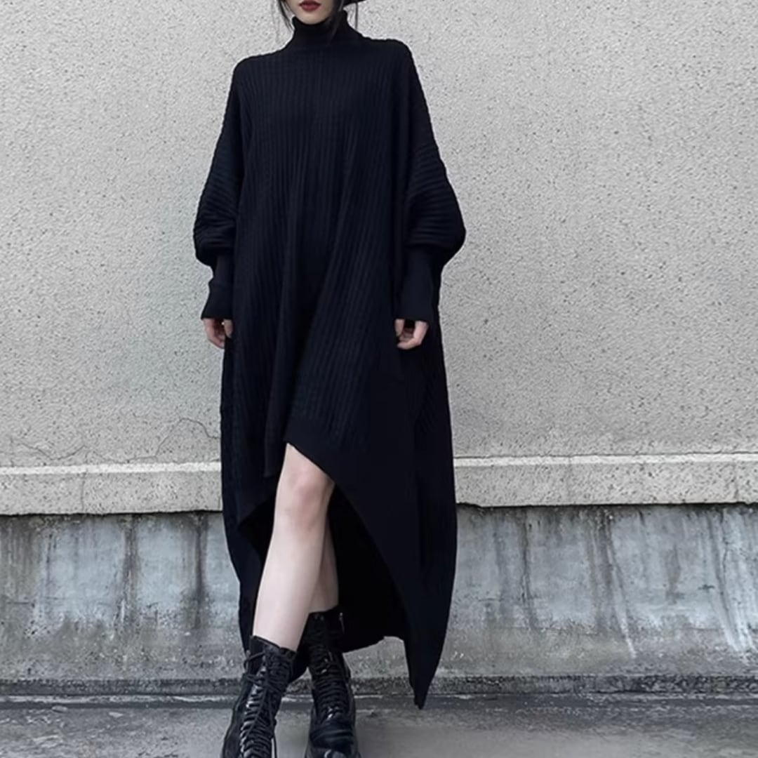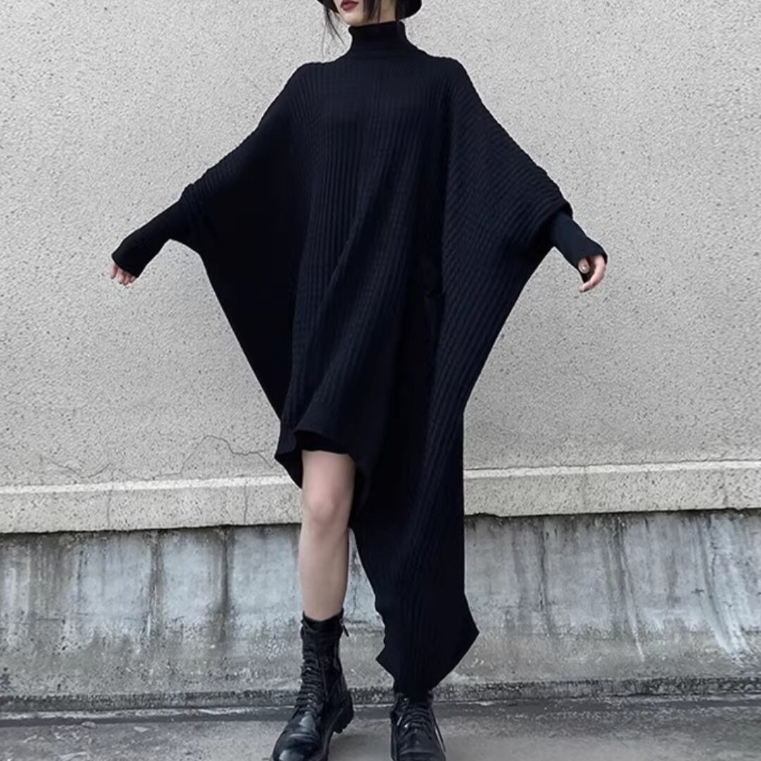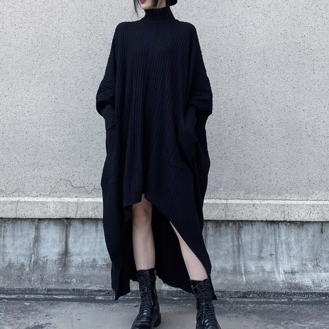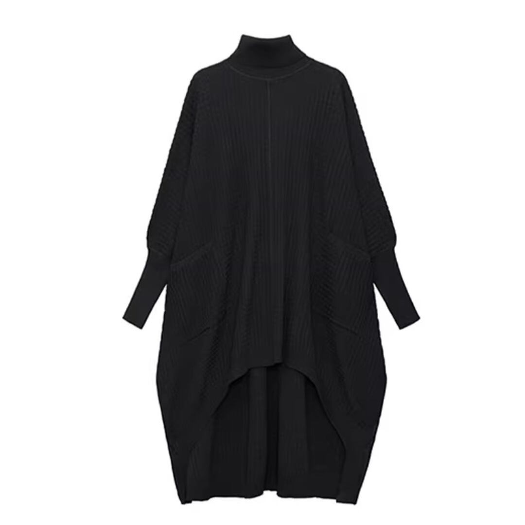 Turtleneck Knit Dress, Batwing Sleeve Irregular Loose Sweater Dress (ME304)