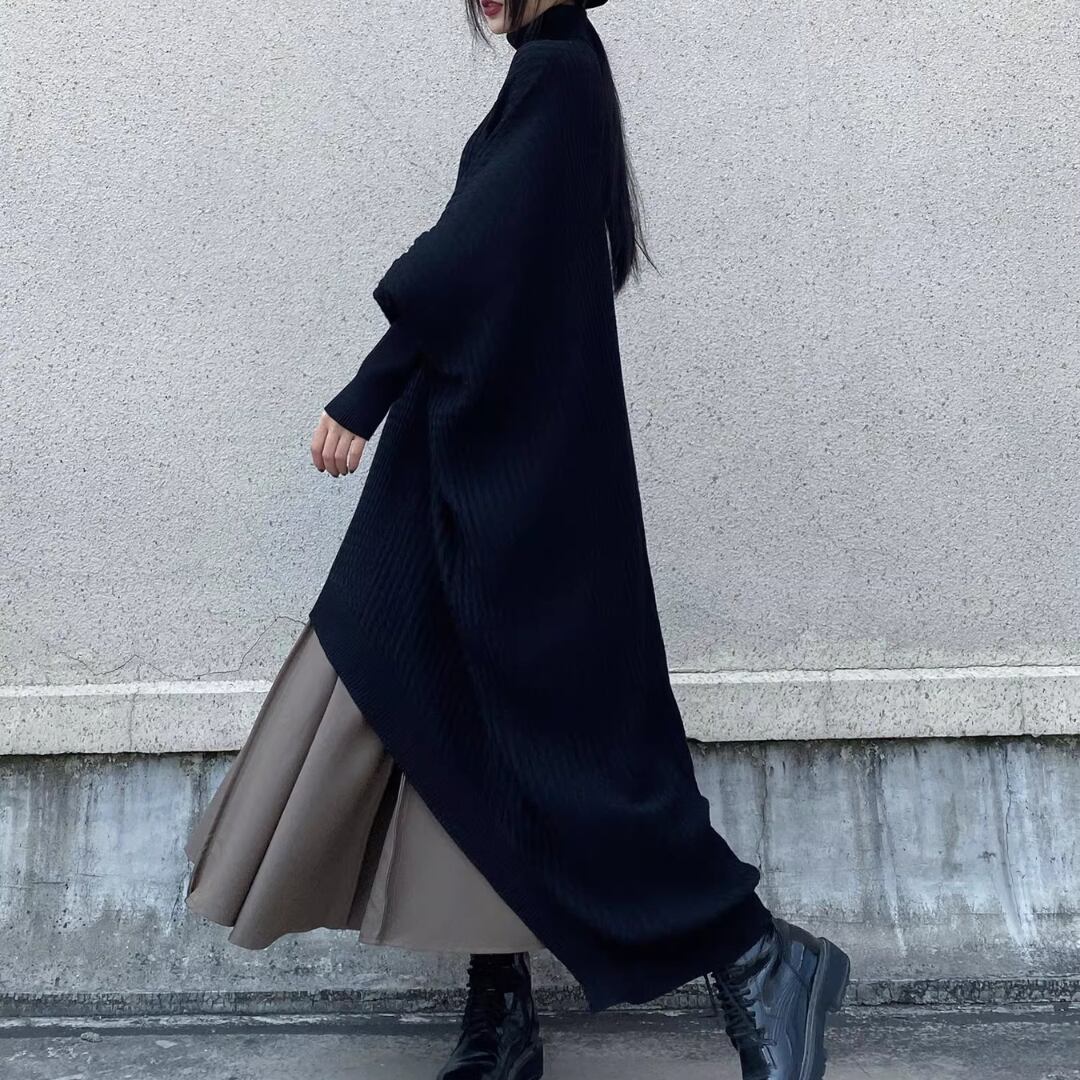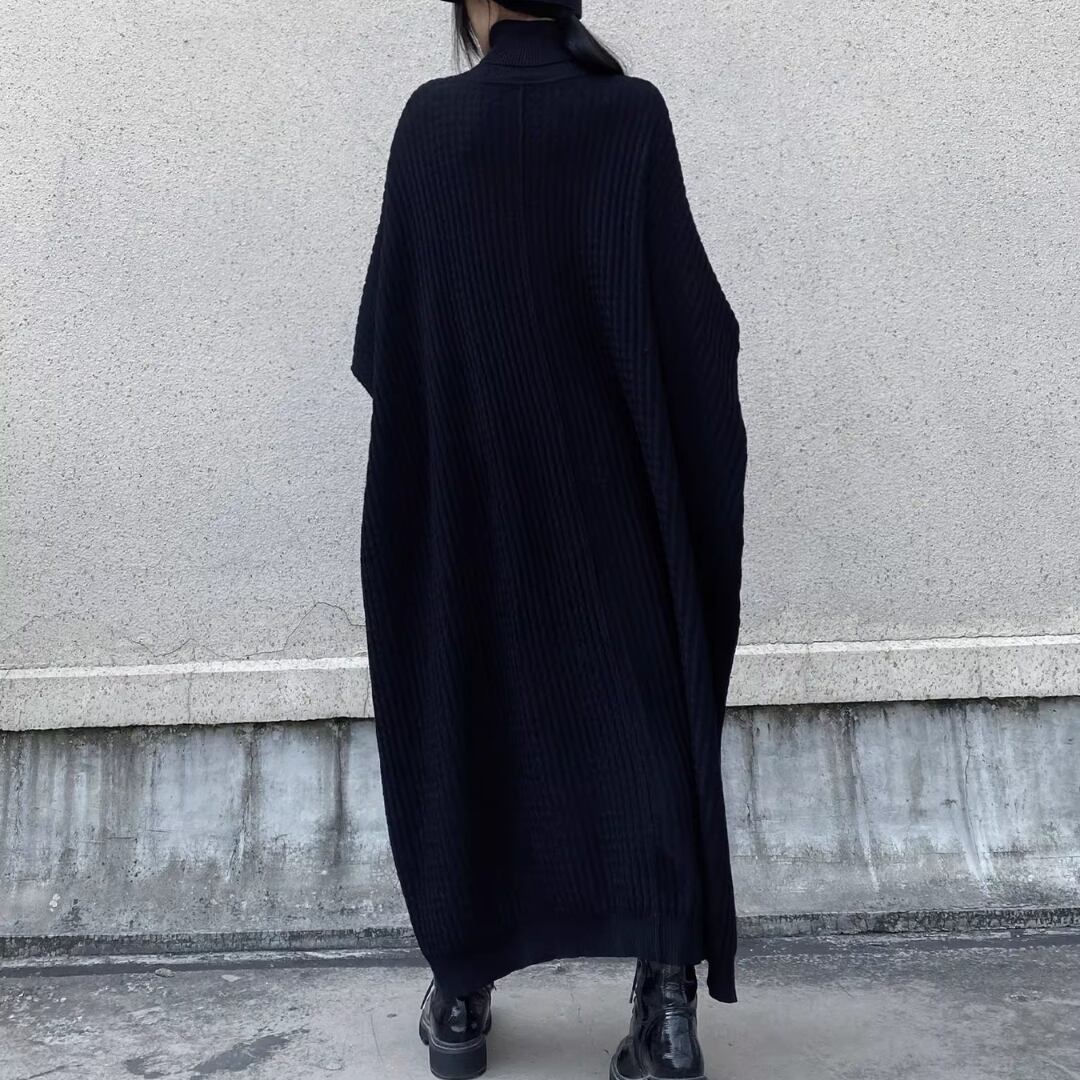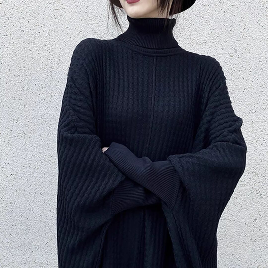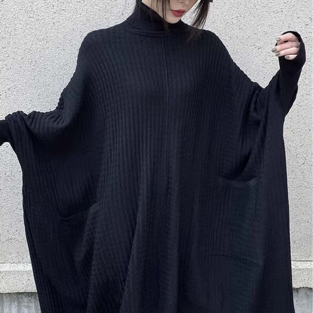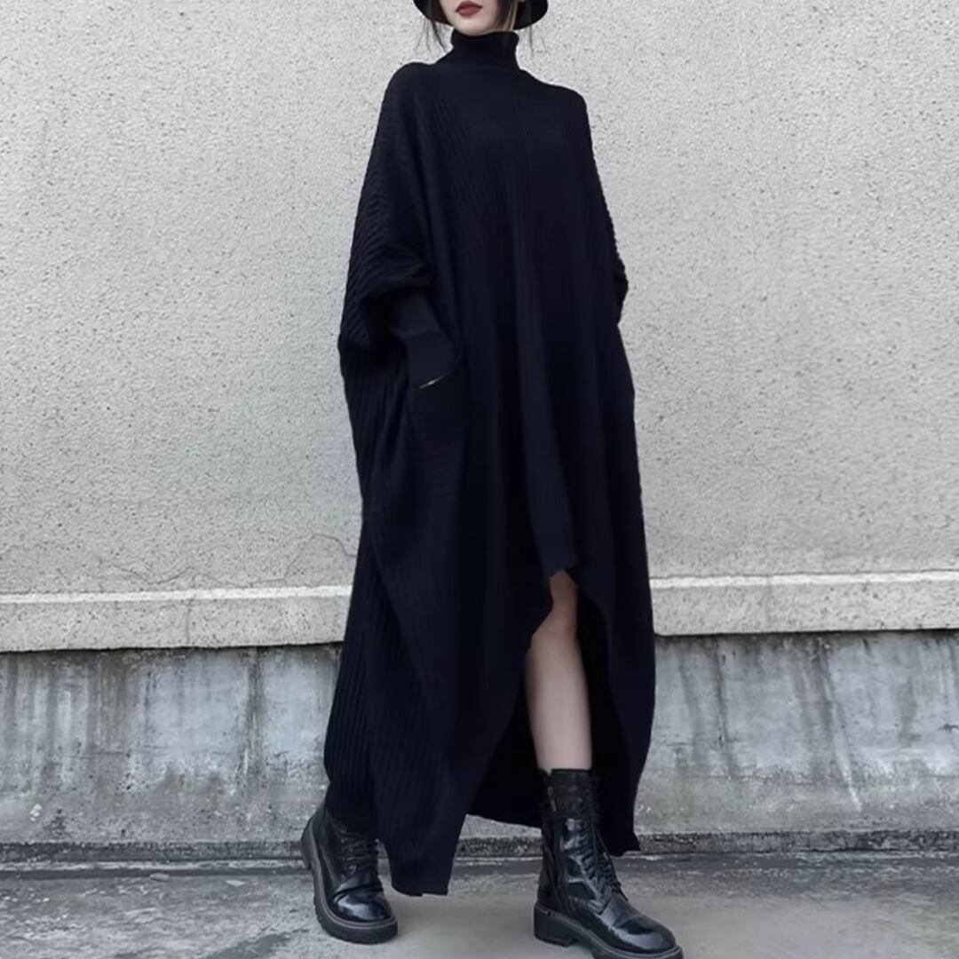 Turtleneck Knit Dress, Batwing Sleeve Irregular Loose Sweater Dress (ME304)