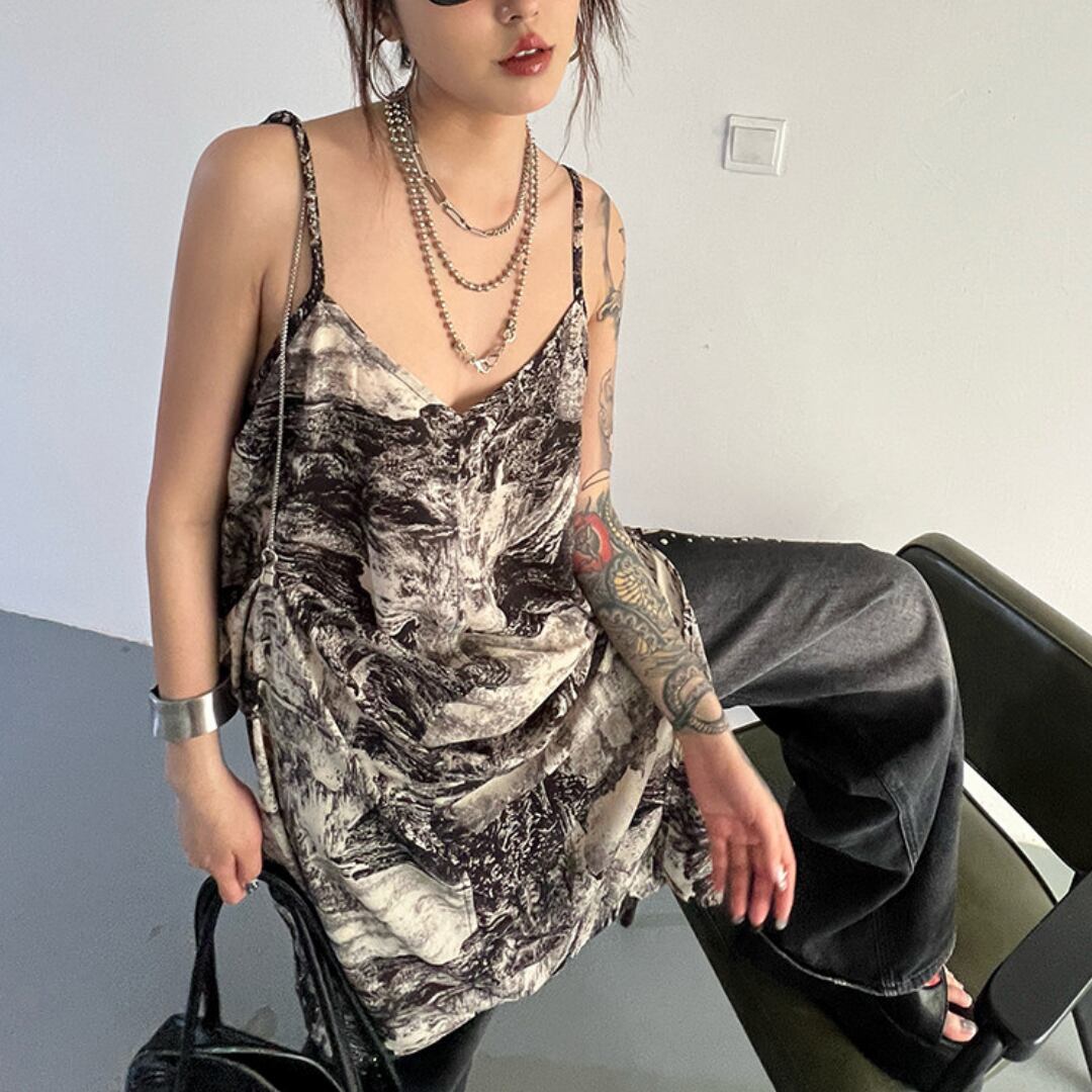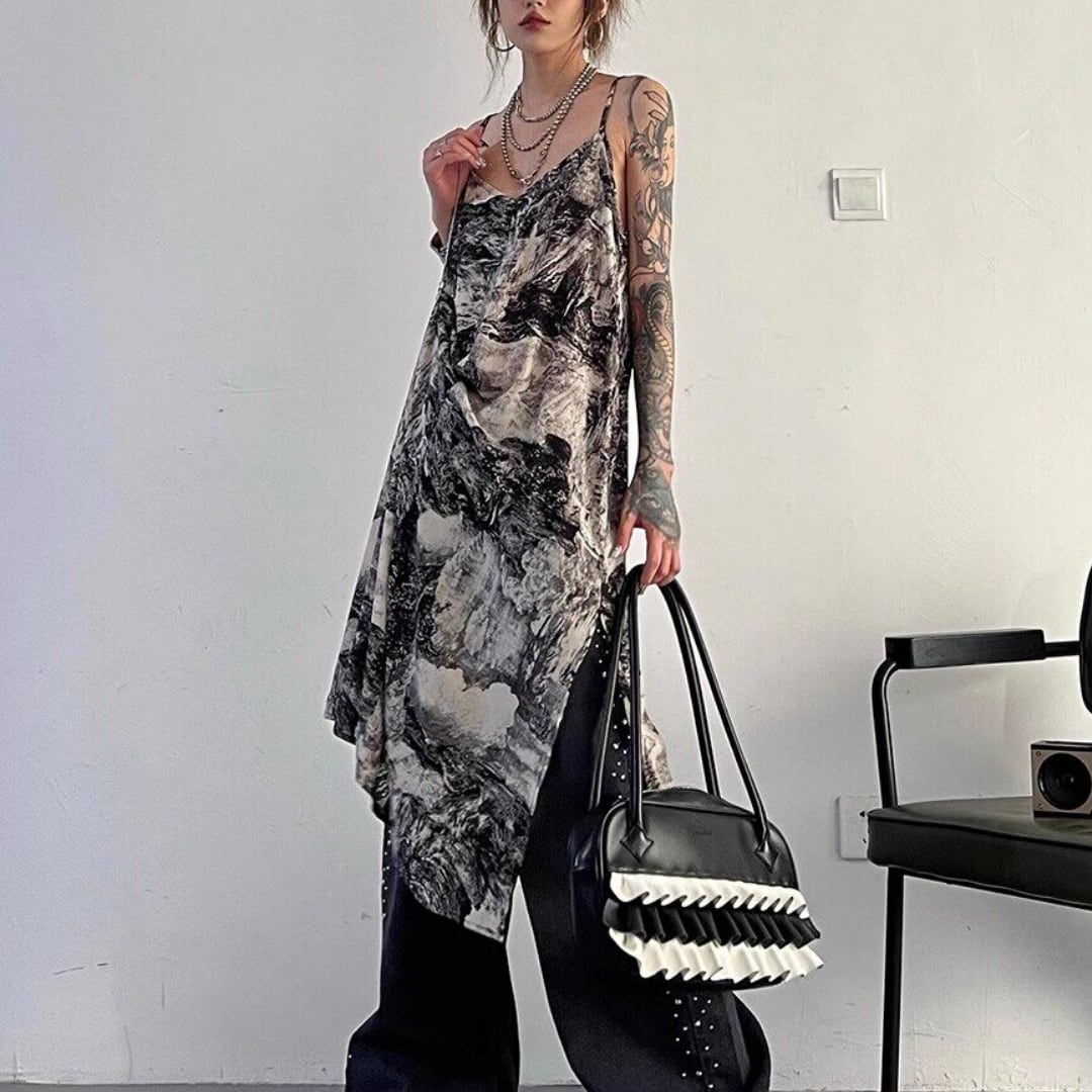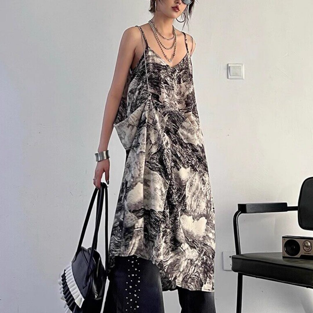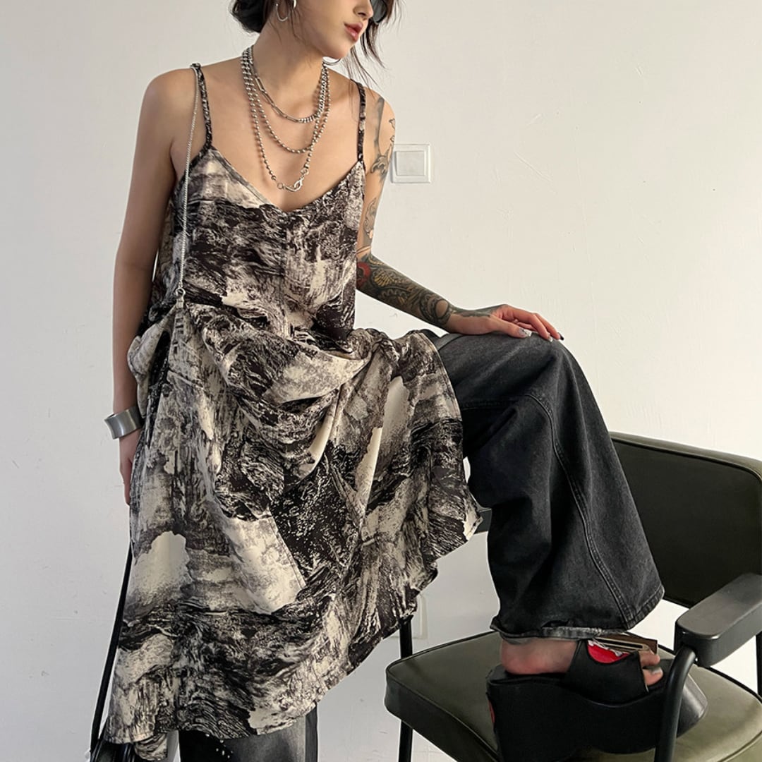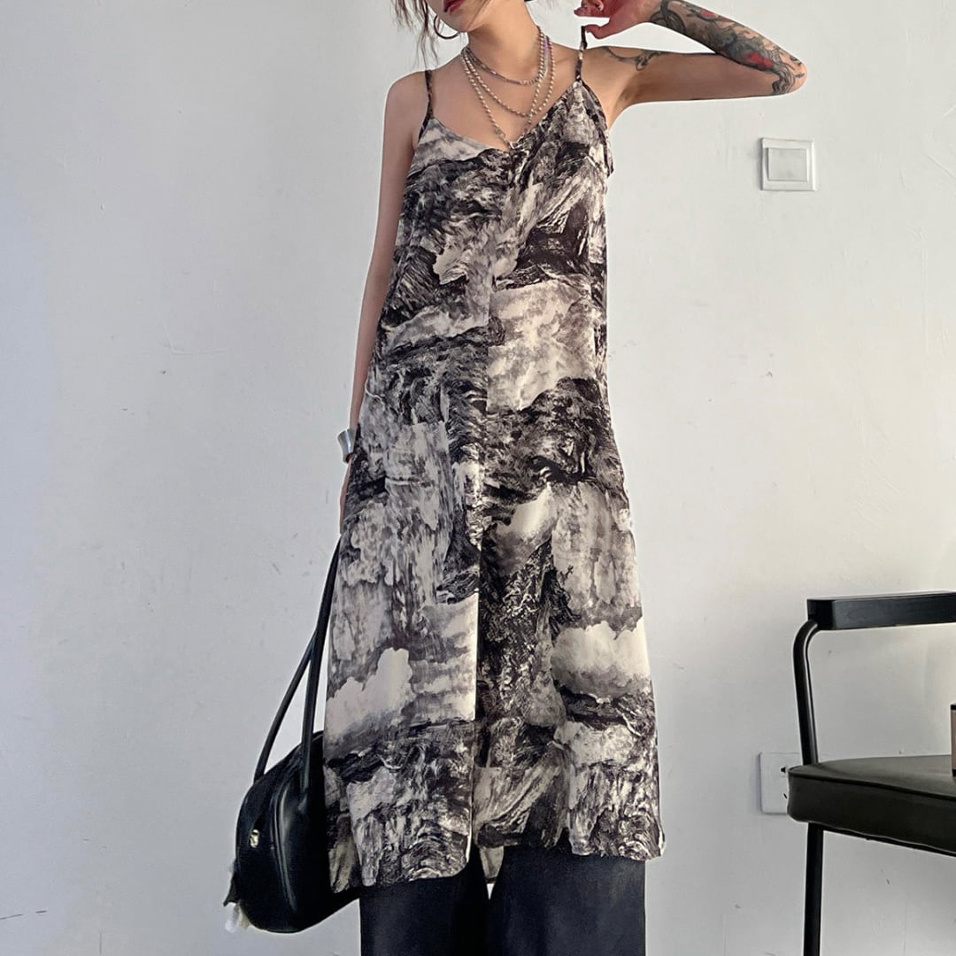 Ink painting halter neck dress (ME360)