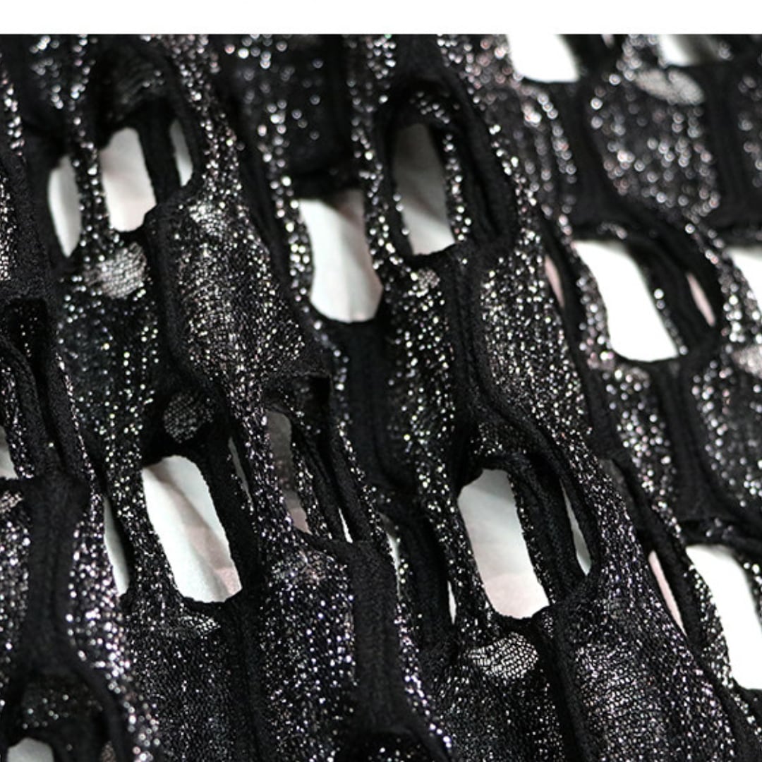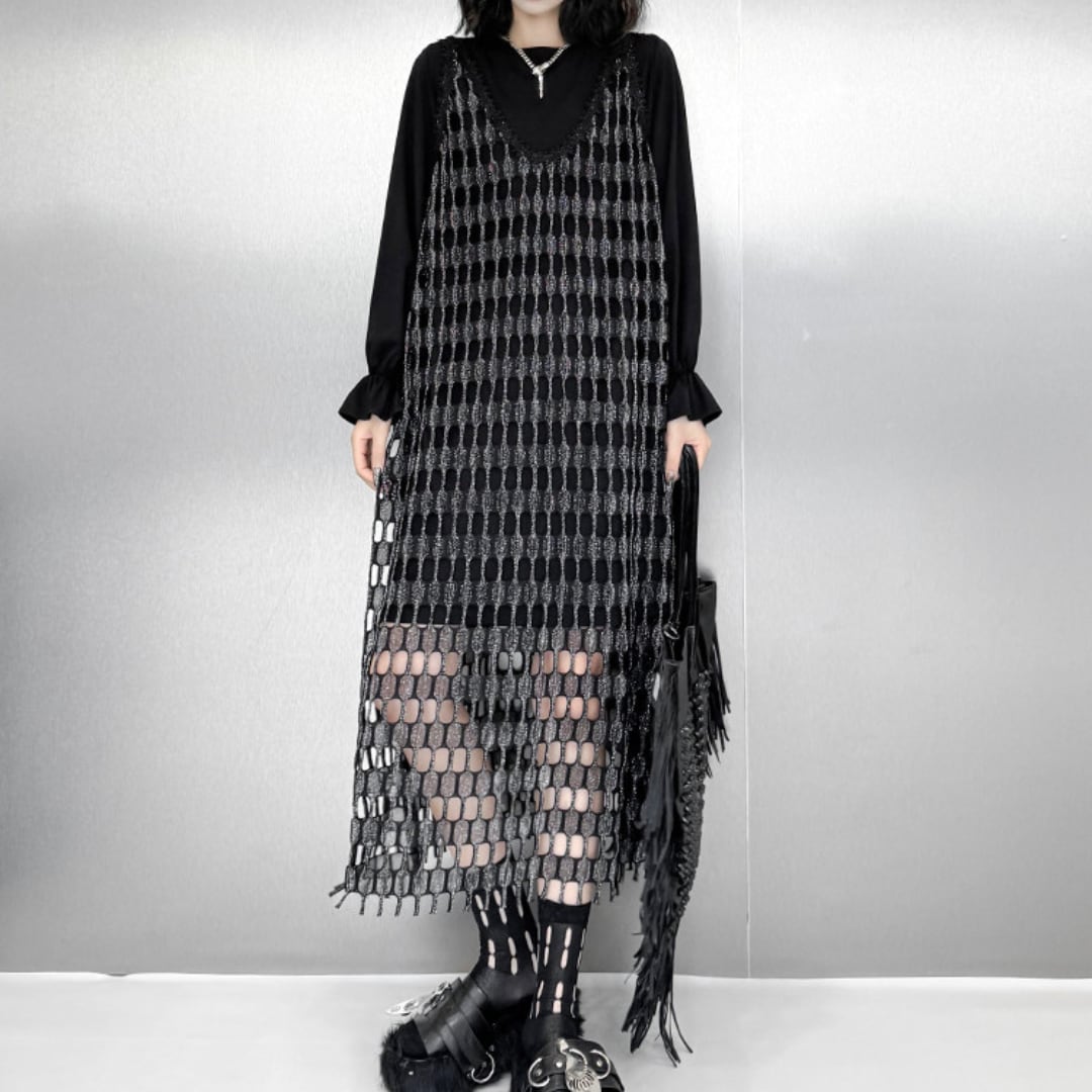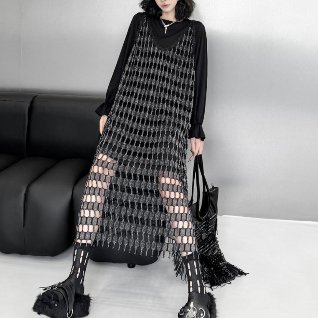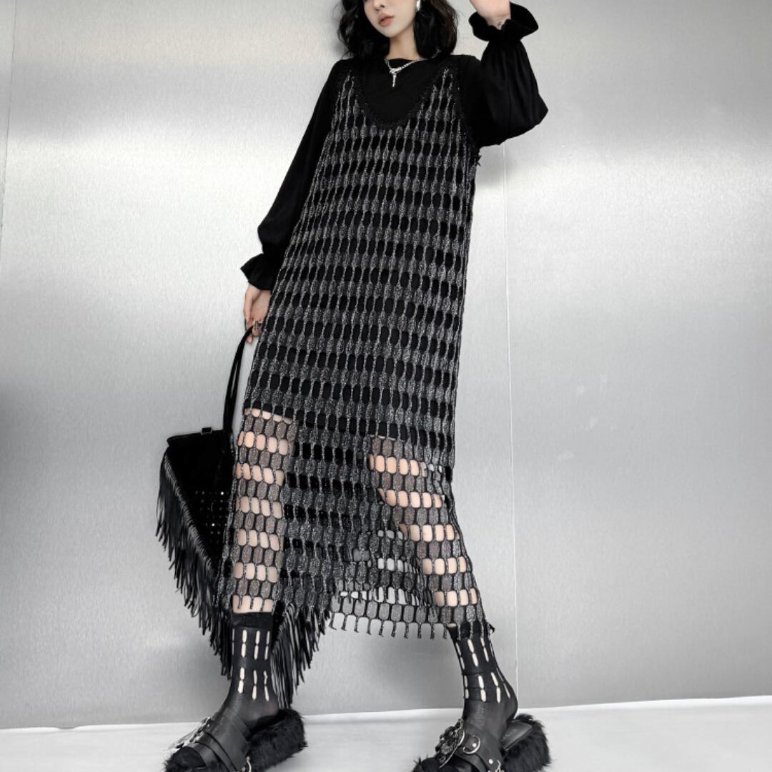 Silver mesh vest and long-sleeved T-shirt two-piece set (ME384)